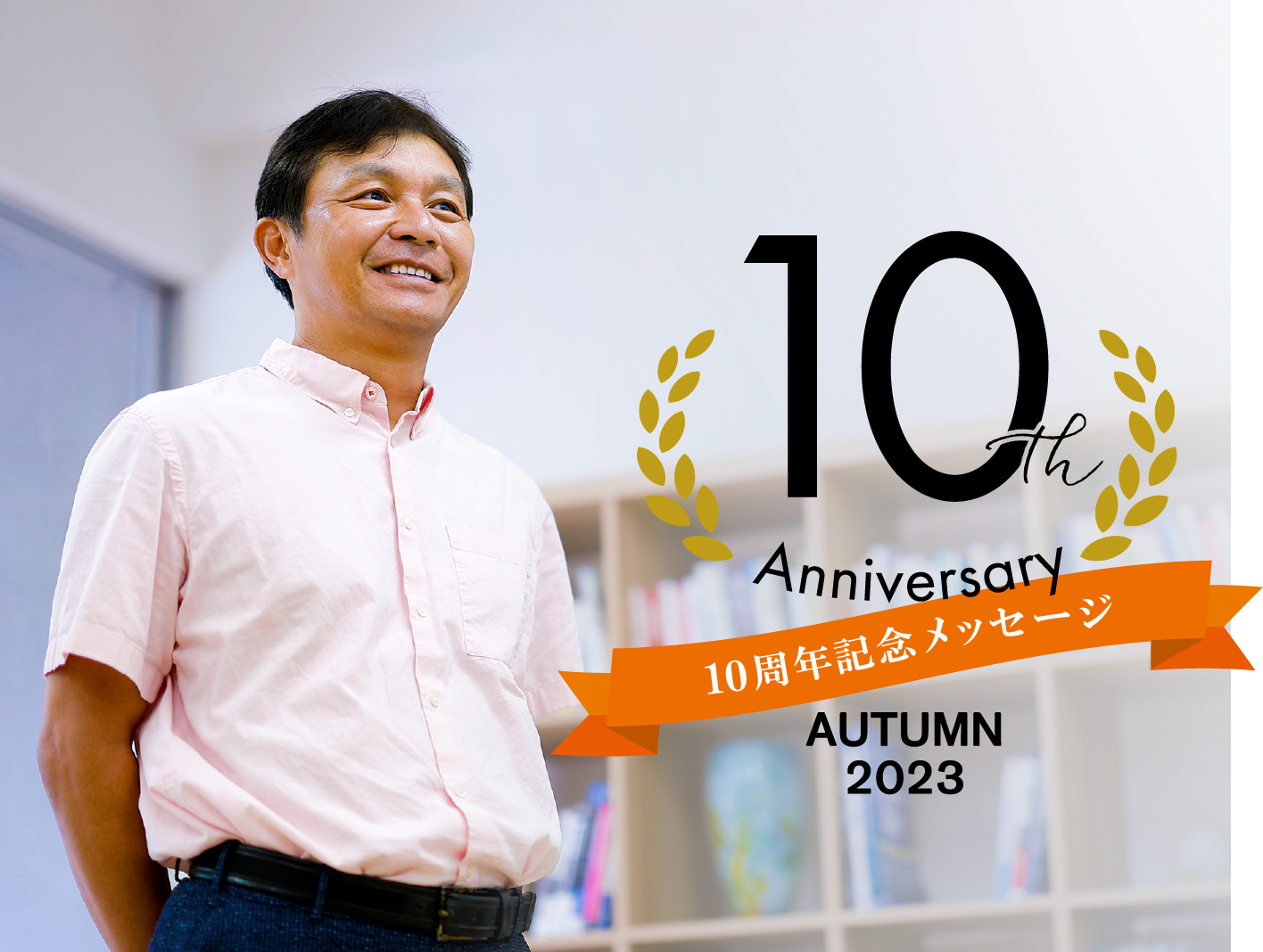 創業時はほんとうに何もなかったんです。家賃20万円の60㎡の事務所にたったひとりで、社員もおらず……来るあてもない社員のために10席の中古机を準備しました。あれから10年。当時ノドから手が出るほどほしかったものが、今、少しずつ形になってきました。それは、実績、信用、信頼、顧客、仲間、資金です。どれも一朝一夕で手に入らないものばかり。10年という歳月をかけて、リ・バースのみんなと一緒に協力して日々の仕事に誠実に向き合い、コツコツと積み上げてきた結果だと実感しています。本当にありがとうございます。